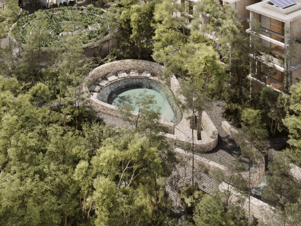Surrounded by jungle and guided by design, this low-density residential project in Tulum introduces a new way of living in the Riviera Maya. Built on more than 5.7 acres, with over 80% of the land preserved for green spaces, gardens, and wellness-focused amenities, this community offers the perfect balance between privacy and connection.